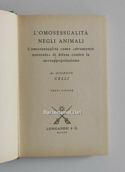 L'omosessualità negli animali. L'omosessualità come strumento di difesa contro la sovrappopolazione | Libri antichi e moderni | Celli Giorgio