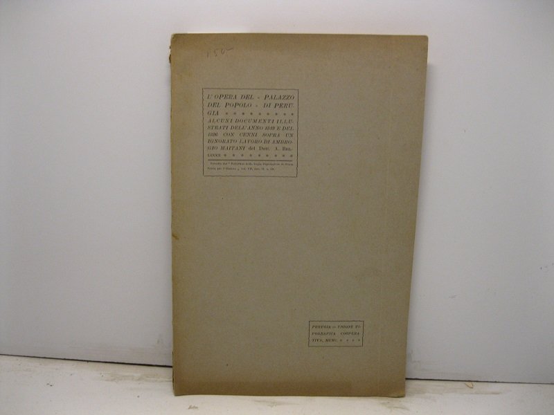 L'OPERA DEL PALAZZO DEL POPOLO DI PERUGIA Alcuni documenti illustrati dell'anno 1319 e del 1326 con cenni sopra un ignorato lavoro di Ambrogio Maitani | Libri antichi e moderni | Bellucci Alessandro