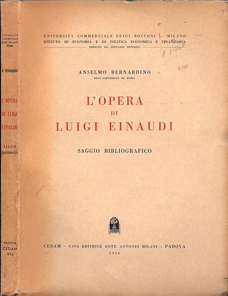 L' opera di Luigi Einaudi | Libri antichi e moderni | Anselmo Bernardino