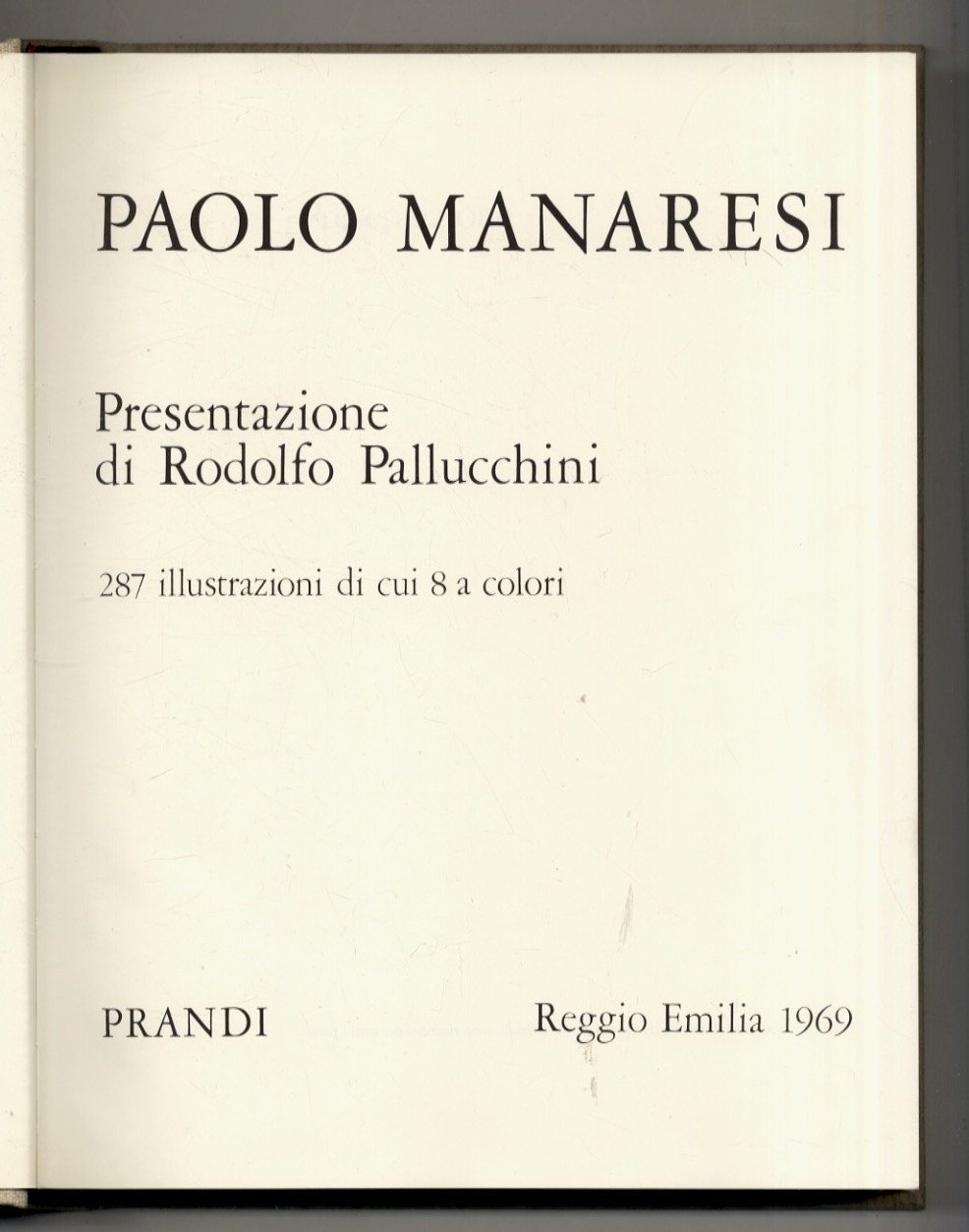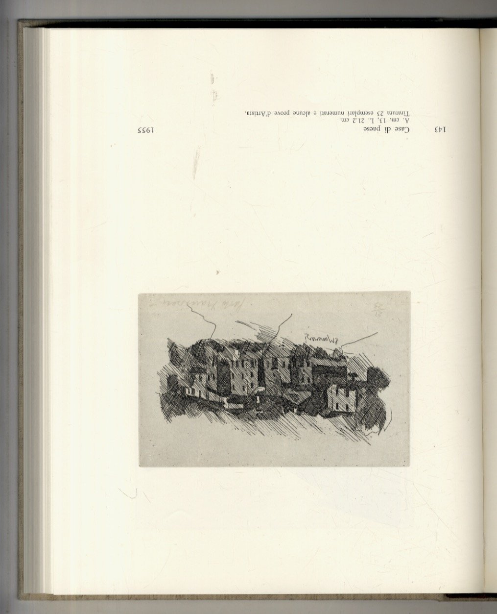 Reggio Emilia, Prandi, 1969, in-4, tela editoriale con sovraccoperta lucida illustrata a colori, entro cofanetto in cartone rigido, pp. (30). Con 287 tavole, di cui 8 a colori, che documentano la produzione grafica dell'artista dal 1949 al 1968, 5 illustrazioni in b.n. nel testo e curriculum vitae. Edizione di lusso in 125 esemplari: questo volume appartiene alla tiratura di 25 esemplari (il ns. è il n° XX) fuori commercio con numerazione romana a cui è allegata acquaforte originale (misura del foglio cm. 30x23, all'impressione: cm. 18x15) appositamente eseguita da Manaresi intitolata "Case del borgo", firmata dall'autore in lastra e in matita in basso a destra e protetta da velina. Condizioni di nuovo.