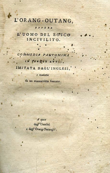 L' Orang - Outang ovvero L' uomo del bosco incivilito. Commedia pantomima in cinque atti; imitata dagl' inglesi, e tradotta da un manoscritto francese