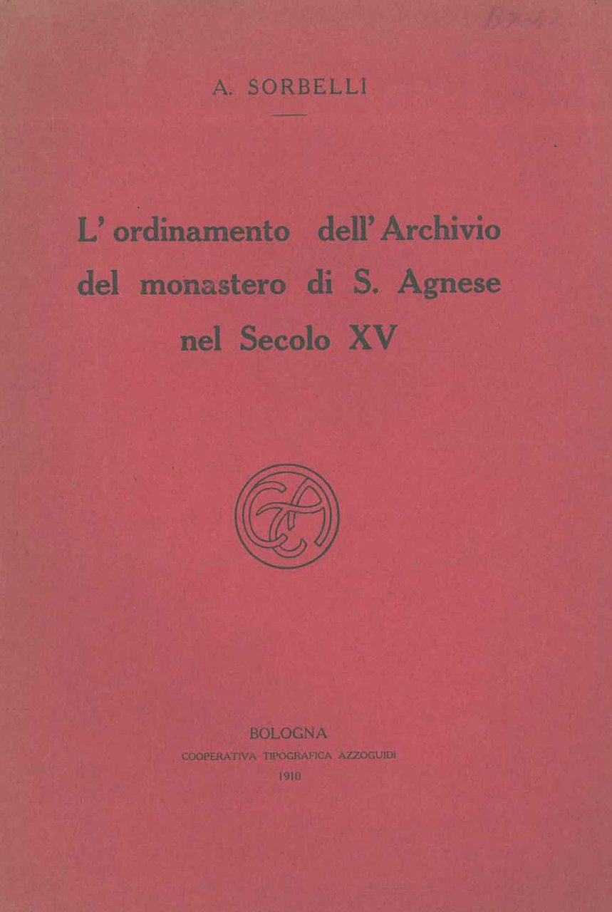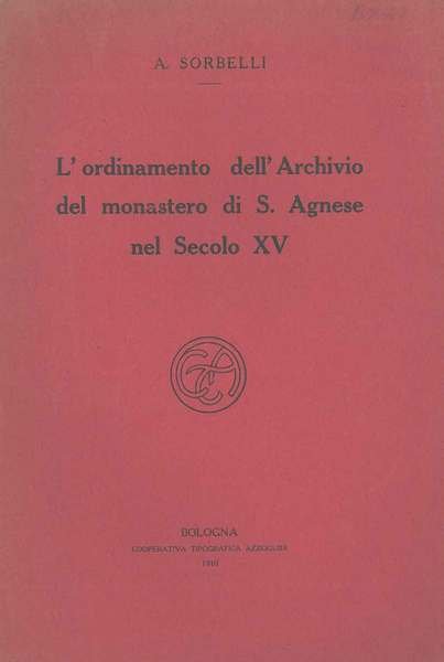 L' ordinamento dell'Archivio del monastero di S. Agnese nel secolo XV | Libri antichi e moderni | Sorbelli Albano