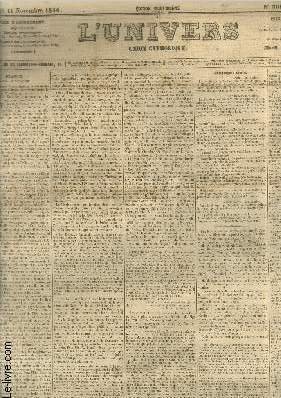 L'Univers - Union catholique 24e Année n°309 Mardi 11 Novembre 1856. Sommaire : De la falsification des substances sacramentelles - Etoffes de soie nouvelles, velours - Vie de la Soeur Marthe - Bulletin agricole et commerciale etc. | Libri antichi e moderni | Collectif