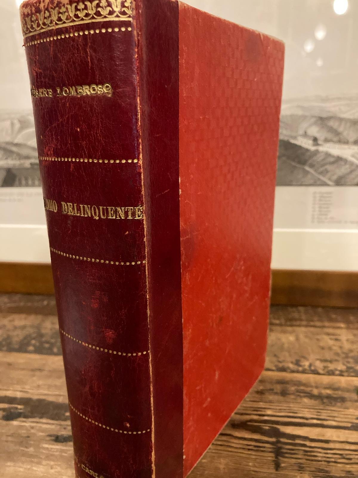 In-8° (23.5x15 cm), pp. (4), 746, mezza pelle coeva bordeaux con fregi e titoli dorati al dorso, piatti tela rossa. Conservato l' occhietto. 7 figure nel testo (e altre più minute non numerate di tatuaggi), 8 tavole in litografia fuori testo (le IV-V-V di fac-simili di autografi sono riunite editorialmente in un'unica tavola riegata fra le pp. 210-211), tavole-tabelle nel testo e f/t (craniometriche in appendice). Una dedica novecentesca al frontespizio. Lievi fioriture e arrossature a poche pagine, macchioline rosa a p. 118. Più che buon esemplare, completo di tutti gli apparati. Seconda assai, rara edizione, di una delle più celebri opere dell'antropologo veronese pubblicata per la prima volta nel 1876 e annoverata fra i libri fondanti l'antropologia criminale moderna. In questa seconda edizione del 1878 Lombroso (Verona 1835 -Torino 1909) risponde alle obiezioni che erano state rivolte alla sua teoria, la quale, secondo alcuni critici, avrebbe limitato la spiegazione della delinquenza al dato costituzionale del criminale, trascurando le influenze dell'ambiente e l'aspetto psicologico. La presente nuova edizione viene quindi ampliata con studi sul significato del tatuaggio e sul gergo criminale, il suicidio, la prostituzione. Infine analizza il fenomeno criminale in base all'età, al sesso, al clima, all'alimentazione, alla povertà. Sono quindi emendati e aumentati i ragionamenti sull'embriologia del delitto, dell'anatomia patologica ed antropologica del delinquente, della biologia e psicologia del delinquente nato, dell'epilessia in relazione alla delinquenza, dei nessi tra delinquenza e follia, dell'eziologia del delitto e della sua prevenzione, delle applicazioni penali ai delitti. Il delinquente viene visto come uno speciale tipo antropologico e il delitto stesso appare, sotto il prospetto tanto statistico quanto antropologico, come un fenomeno naturale al pari dei cicli biologici.