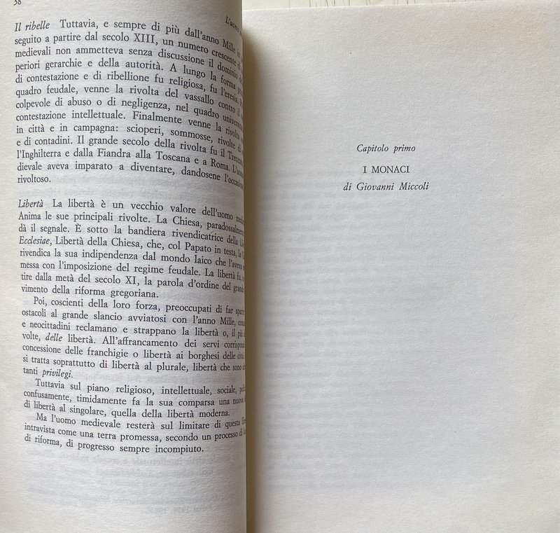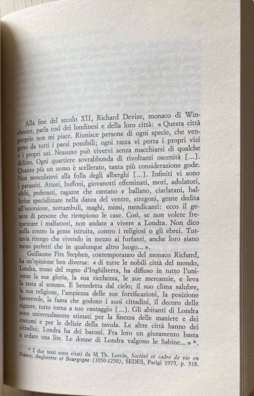 Soggetti: Medioevo, Medievistica, Studi culturali, Storia medievale, Cultura, Mentalità, Personalità, Raccolte, Saggistica, Uomini tipici, Donne, Famiglia, Tipologie, Personaggi, Anno Mille, Quattrocento, Monaci, Guerrieri, Cavalieri, Vita quotidiana, Contadini, Ambiente, Città, Cittadini, Immigrati, Campagna, Mura, Mercato, Commercio, Lavoro, Tempo libero, Mutamenti sociali, Intellettuali, Politica, Artisti, Mercanti, Donna, Emarginati, Santi, Chiesa, Teologia, Religione, Superstizioni, Miti, Mitologia, Credenze, Divulgazione storica, Società, Storiografia, Annales, Marc Bloch, Libri universitari, Umanistica, Testi classici, Consultazione, Riferimento, Bibliografia, Opere generali, Histoire économique sociale, Peccato, Aldilà, Morte, Miracoli, Riti, Rituali, Magia, Monachesimo, Mistica, Ascetismo, Misticismo, Italia, Età comunale, Comuni, Toscana, Firenze, Roma, Papa, Papato, Impero, Controversie religiose, Eresie, Eretici, Italia, Urbanesimo, Sviluppo economico, Ricchezza, Povertà, Miseria, XIV secolo, Divina Commedia, Dante Alighieri, Decamerone, Boccaccio, Santità, Arte, Nascite, Matrimonio, Oralità, Profitto, Denaro, Usura, Purgatorio, Remissione, Anime, Salvezza, Immaginario, Monasteri, Chiese, Abbazie, Regola francescana, San Francesco d'Assisi, Francia, Ricchi, Vita monastica, Potere, Laici, Predicatori, Chierici, Diritti, Bisogni, Lucien Febvre, Letteratura cavalleresca, Poesia, Digione, Parigi, Artigiani, Attività, Borghesia, Ceti, Buscheto, Cattedrale, Guerre, Terra Santa, Crociate, Comportamento, Comunità, Condizioni, Confraternite, Contesto, Cristianesimo, Cristo, Culto, Feudalesimo, Figli, Franco Cordero, Georges Duby, Gerarchia, Gruppi, Mecenatismo, Committenze, Nobiltà, Aristocrazia, Privilegi, Tasse, Ordini mendicanti, Pietro il Venerabile, Prestigio, Professioni, Mestieri, Torneo, Vescovi, Villaggio, Wiligelmo, Amiens, Reims, Architettura, Estetica, Gusto, Avignone, Viaggio, Peste, Malattie, Igiene, Carlo Magno, Castelli, Germania, Imperatori, Erich Kohler, Chevalier, Femme, Folklore, Cervantes, Ludovico Ariosto, Thomas Malory, Arti liberali, Corporazioni, Benedetto Antelami, Abelardo, Sant'Agostino, Miniature, Moyen Âge, Église, Monarchia, Bibbia, Rois Thaumaturges, Re taumaturghi, Guaritori, Saint Louis, Luigi, Banchieri, Banche, Canzone di Rolando, Cristianità, Status, Marginalité, Emarginazione, Jean-Claude Schmitt, Gaston Poulain, Marie-Dominique Chenu, Indulgenze, Genova, Venezia, Siena, Pisa, Philippe Ariés, Roncisvalle, Londra, Inghilterra, Chanson de geste, Trovatori, Amore cortese, Cortigiani, Corti, Giullari, Spagna, Reconquista, Gerusalemme, Autorità, Patriarcato, Primogenito, Ribelli, Libertà, Rivolte, Vassalli, Feste popolari, Riforma gregoriana, Regime feudale, Ancien Régime, Preghiera, Penitenza, J. Leclerq, G. Vinay, Schiavitù, Middle Ages, Medieval Studies, Cultural studies, Medieval history, Culture, Mentality, Personality, Collections, Non-fiction, Typical men, Women, Family, Typologies, Characters, Year 1000, Four hundred, Monks, Warriors, Knights, Daily life, Farmers, Environment, Cities , Citizens, Immigrants, Countryside, Walls, Market, Commerce, Work, Leisure, Social changes, Intellectual, Politics, Artists, Merchants, Woman, Marginalized, Saints, Church, Theology, Religion, Superstitions, Myths, Mythology, Beliefs, Disclosure history, Society, Historiography, University books, Humanities, Classical texts, Consultation, Reference, Bibliography, General works, Sin, Afterlife, Death, Miracles, Rites, Rituals, Magic, Monasticism, Mysticism, Asceticism, Mysticism, Italy, Communal age, Communes, Tuscany, Florence, Rome, Pope, Papacy, Empire, Religious controversies, Heresies, Heretics, Italy, Urbanism, Economic development, Wealth, Poverty, Misery, 14th century, Divine Comedy, Holiness, Art, Births, Marriage, Orality, Profit, Money, Usury, Purgatory, Remission, Souls, Salvation, Imaginary, Monasteries, Churches, Abbeys, Franciscan Rule, St. Francis of Assisi, France, Rich, Monastic life, Power, Laity, Preachers, Clerics, Rights, Needs, Chivalric Literature, Poetry, Dijon, Paris, Artisans, Activities, Bourgeoisie, Classes, Cathedral, Wars, Holy Land, Crusades, Behavior, Community, Conditions, Confraternities, Context, Christianity, Christ, Cult, Feudalism, Children, Hierarchy, Groups, Patronage, Commissions, Nobility, Aristocracy, Privileges, Taxes, Mendicant orders, Peter the Venerable, Prestige, Professions, Trades, Tournament, Bishops, Village, Architecture, Aesthetics, Taste, Avignon, Travel, Plague, Diseases, Hygiene, Charlemagne, Castles, Germany, Emperors, Liberal Arts, Corporations, St. Augustine, Miniatures, Monarchy, Bible, Wonderworker Kings, Healers, Louis, Bankers, Banks, Roland's Song, Christianity, Status, Marginalization, Indulgences, Genoa, Venice, London, England, Troubadours, Courtly love, Courtiers, Courts, Jesters, Spain, Jerusalem, Authorities, Patriarchate, Firstborn, Rebels, Liberty, Revolts, Vassals, Popular festivals, Gregorian reform, Feudal regime, Prayer, Penance, Slavery