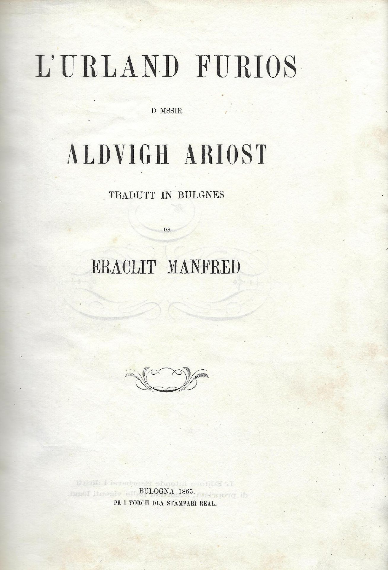 L'Urland furios d mssir Aldvigh Ariost; tradutt in bulgnes da Eraclit Manfred