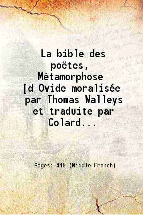La bible des poÎtes, MÈtamorphose d'Ovide moralisÈe par Thomas Walleys et traduite