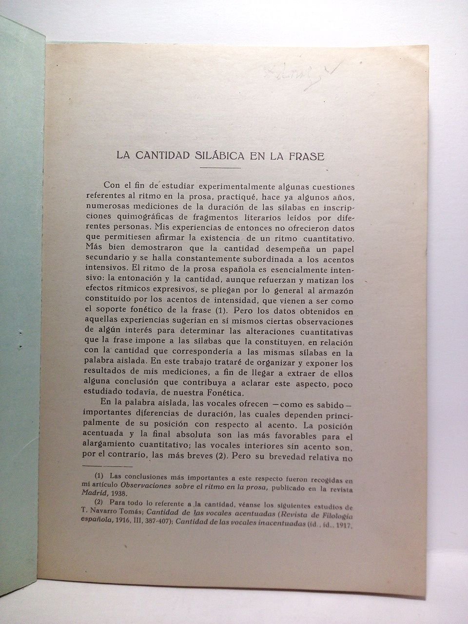 [S.l.]: [s.n.], [ca. 1925].- P. 287-298 (en total 12 pags.); 4º (23,5 x 17,3 cm); Cubiertas provisionales.- Desglosado de alguna revista de la que no tenemos referencia concreta. Posiblemente de la ¿Rev. de Filología Española?.* Al tratarse de un desglose carece de cubiertas y se le han puesto unas provisionales en papel. LENGUA ESPAÑOLA