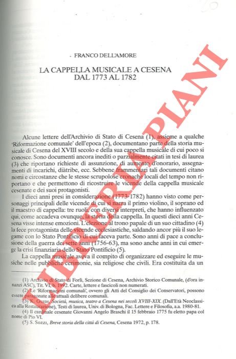 La Cappella musicale a Cesena dal 1773 al 1782. | Libri antichi e moderni | Dell'Amore Franco
