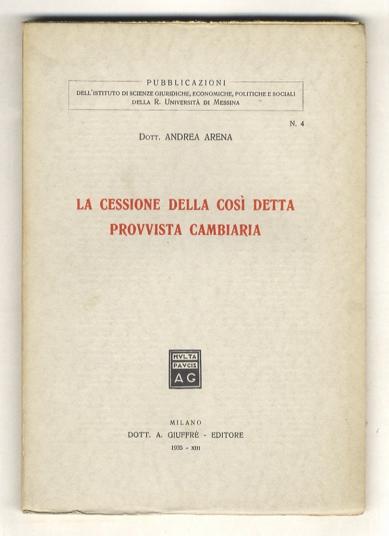 Milano, Giuffrè, 1935, in-8, brossura editoriale, pp. 135. Ottime condizioni.