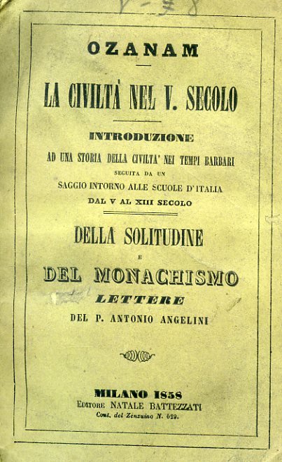 La civiltà nel quinto secolo. Introduzione ad una storia della civiltà nei tempi barbari seguita da un saggio intorno alle scuole d'Italia dal V al XIII secolo - Della solitudine e del monachismo. Lettere del p. Antonio Angelini | Libri antichi e moderni | Ozanam Frédéric Antoine