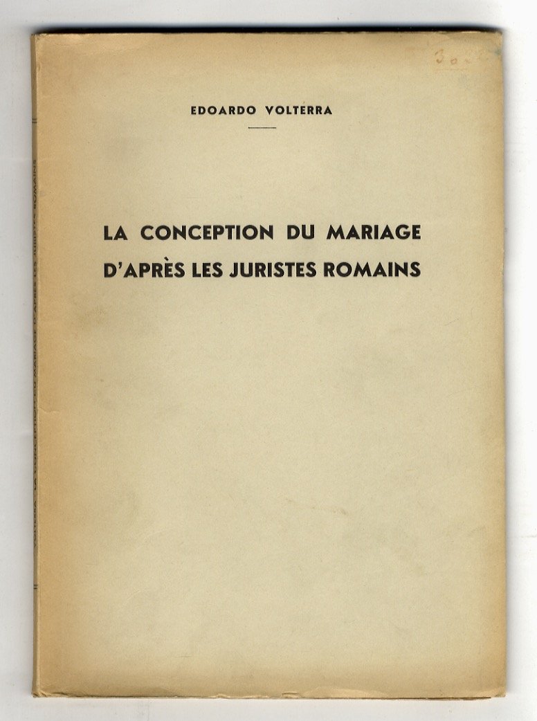 La conception du mariage d'après les juristes romains. | Libri antichi e moderni | Volterra Edoardo.