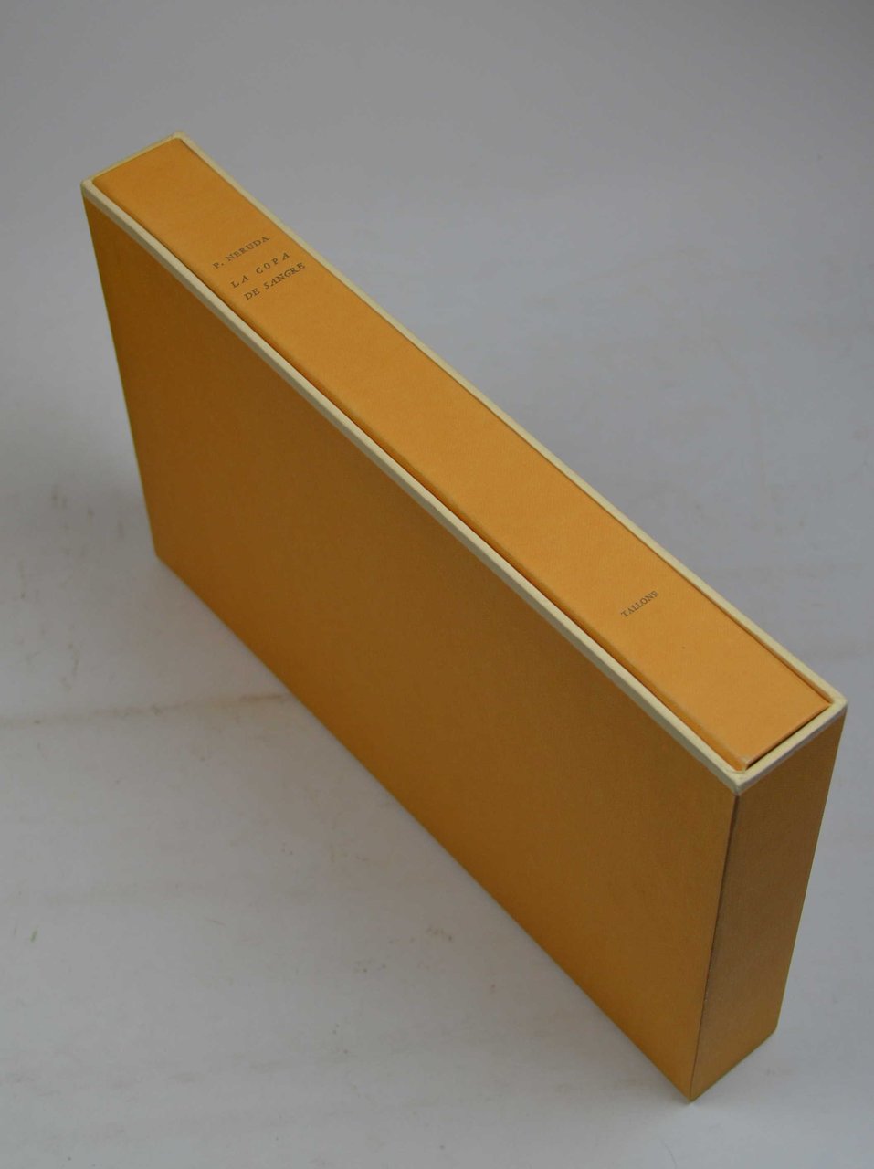 Cm. 28, pp. 94 (8). Bross. originale, entro camicia e custodia. Perfetto stato di conservazione. Edizione a tiratura limitata di 507 esemplari numerati e stampati su carta distinta. Il presente esemplare fa parte delle 470 copie su "papel Miliani de Fabriano". Edizione originale assoluta di questi versi di Neruda.