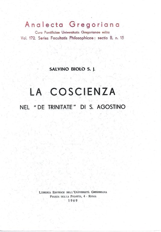 La coscienza nel "De Trinitate" di S. Agostino (Analecta Gregoriana, Vol. 172) | Libri antichi e moderni | Biolo, Salvino, ,Biolo, Salvino