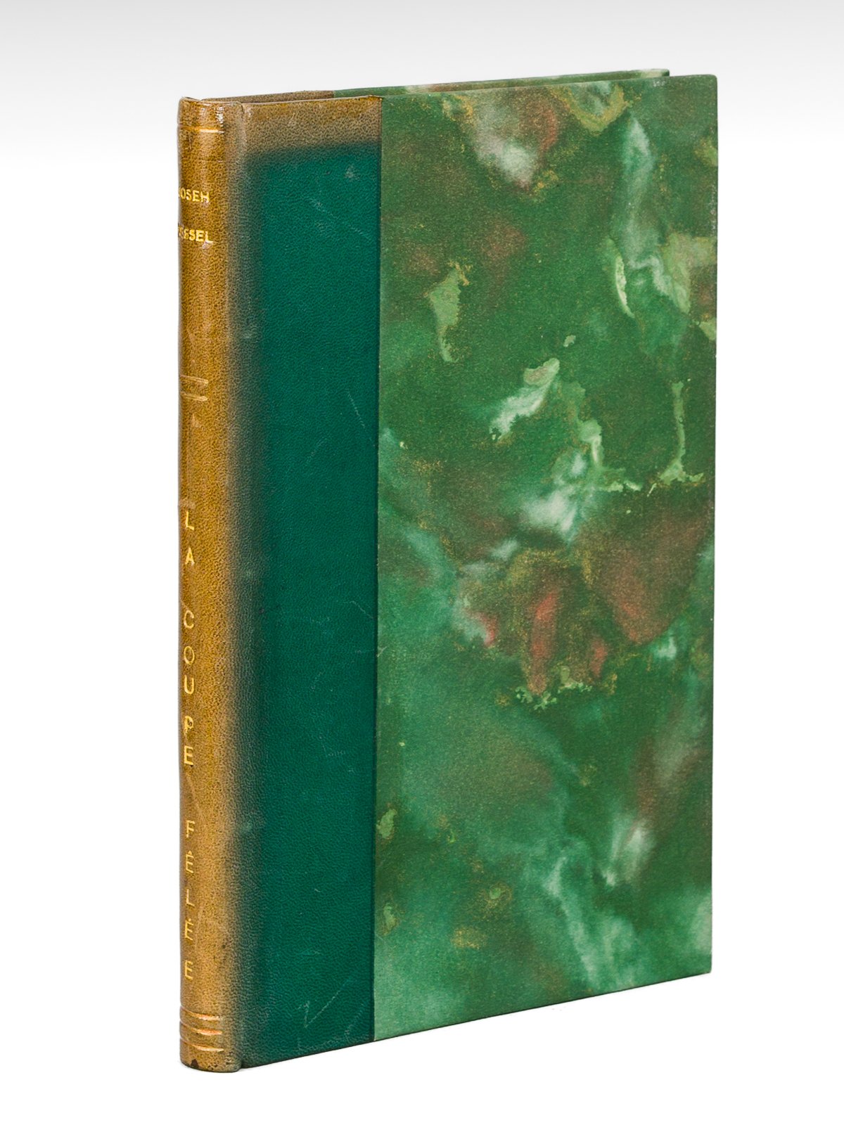 Un des 910 exemplaires sur vergé d'Arches à la forme (n° 844) après 30 japon et 60 hollande, 1 vol. in-12 reliure de l'époque demi-basane verte, couverture conservée, coll. "Les Deux Masques", Editions Lemarget, Paris, 1929, 106 pp. La "coupe fêlée" relate les aventures dramatiques de russes exilés, et d'abord celles Véra Pétrovna, rencontrée par l'auteur à Montmartre. Bon état (dos lég. passé, bon exemplaire par ailleurs, ex-libris en garde).