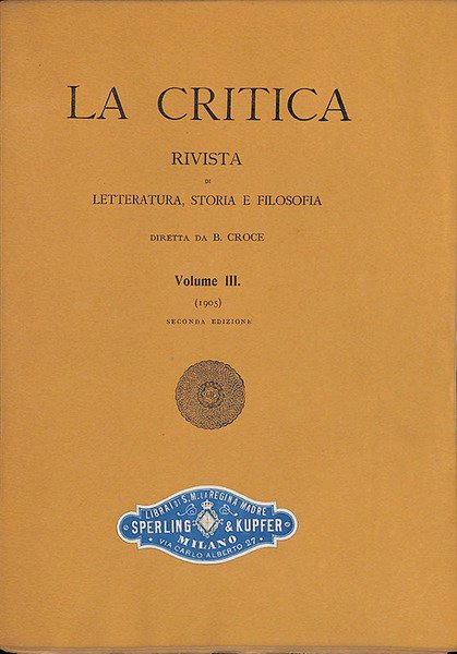 La Critica. Rivista di letteratura, storia, e filosofia. Vol. III, 1905 | Libri antichi e moderni | Benedetto Croce, Direttore