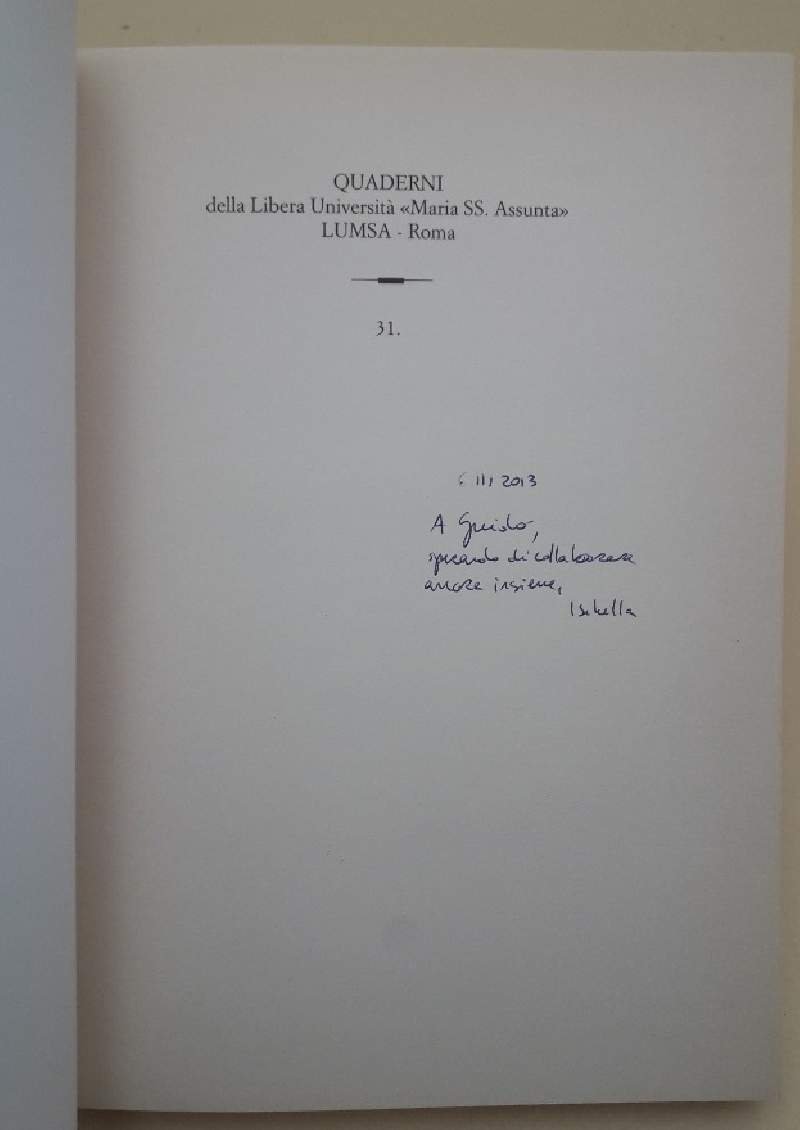 In 8', br. ed. , pp. 231, atti del Convegno delle Scienze Umanistiche nell'ambito della Pastorale Universitaria- Roma, LUMSA-EUR-SAPIENZA, 5-6 marzo 2012. Lievi segni d'uso alla cop., breve dedica all'occhiello, interno in buono statoordinari segni del tempo. ***Due to bureaucratic reasons, books dated over 70 years old cannot be immediately exported, please contact us before placing the order.***