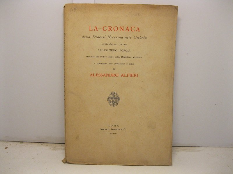 La cronaca della Diocesi Nocerina nell'Umbria scritta dal suo vescovo Alessandro Borgia tradotta dal codice latino della Biblioteca Vaticana e pubblicata con prefazione e note | Libri antichi e moderni | Alfieri Alessandro