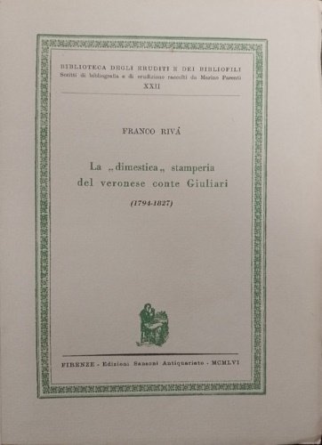 La "dimestica" stamperia del veronese conte Giullari (1794-1827). | Libri antichi e moderni | Riva,Franco.