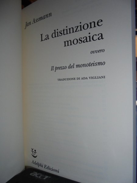 Jan, Assmann. Milano, Adelphi, 2011. La distinzione mosaica. In-8°, cartoncino edit. con risvolti. 253, (2) pp. In stato di nuovo. Neg. scat. UTET parav. nonn.
