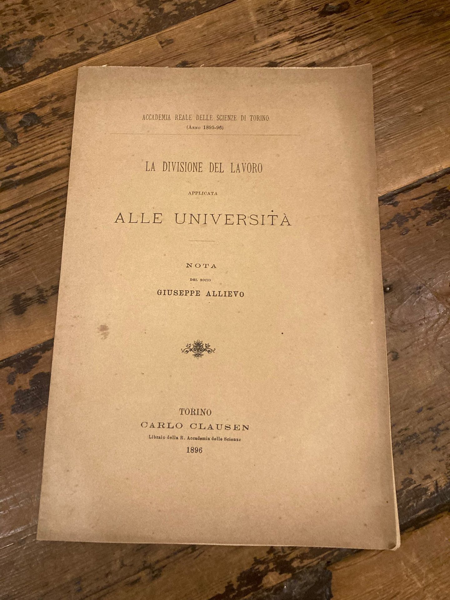 La divisione del lavoro applicata alle università. Nota | Libri antichi e moderni | Allievo Giuseppe