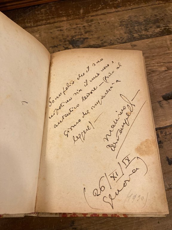 In-8°, pp. 333, (3), mezza pergamena con angoli coeva con titoli dorati su tassello rosso al dorso, piatti rivestiti carta gigliata. Firma di possesso alla sguardia anteriore. Non conservati i piatti della brossura originale ma conservati occhiello e carta bianca con bella dedica autografa dell' autore. Edizione originale di questi 23 racconti bontempelliani. Cfr. Gambetti - Vezzosi, p. 123. Spaducci, p. 55.