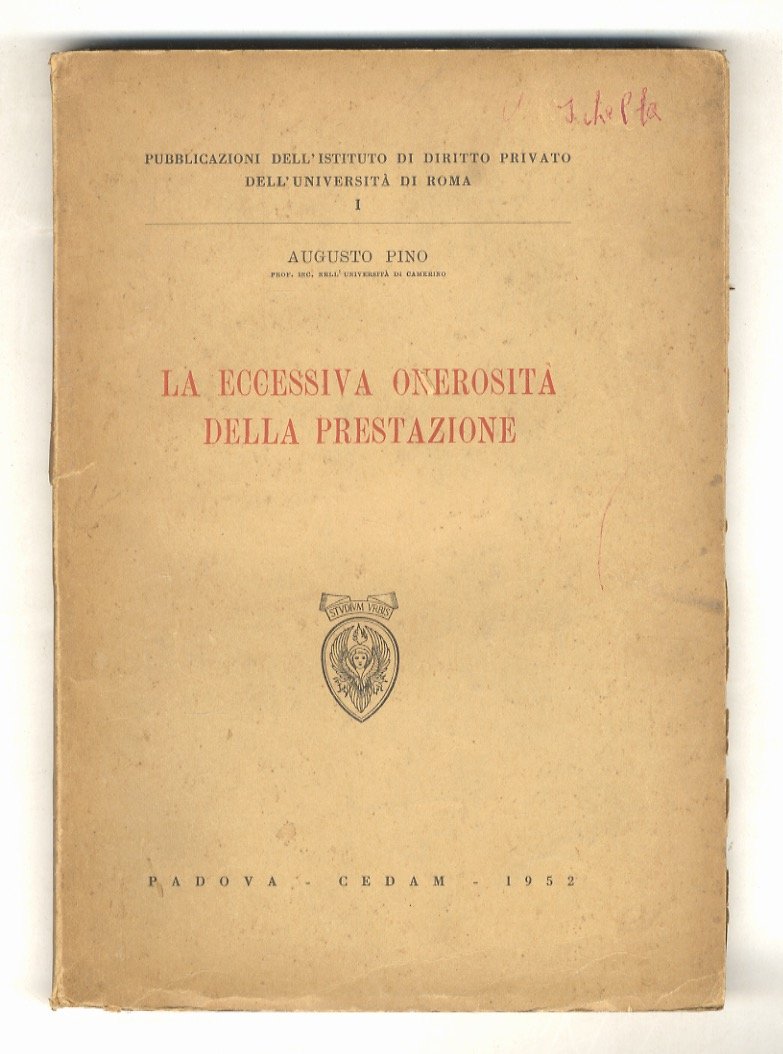 La eccessiva onerosità della prestazione. | Libri antichi e moderni | Pino Augusto.