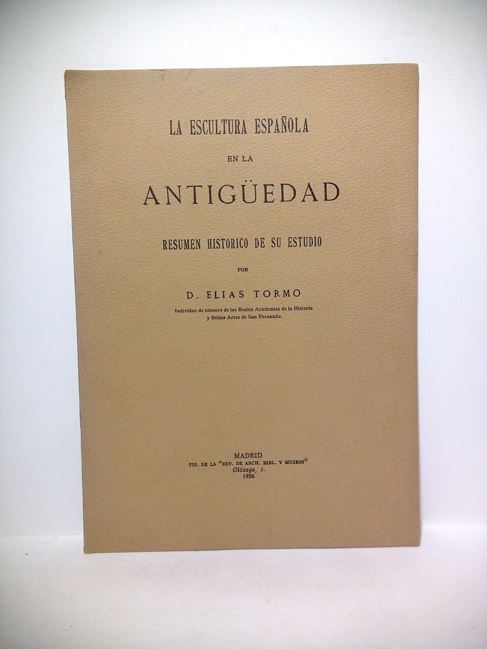 La escultura española en la antigüedad. Resumen histórico de su estudio | Libri antichi e moderni | Tormo, Elías