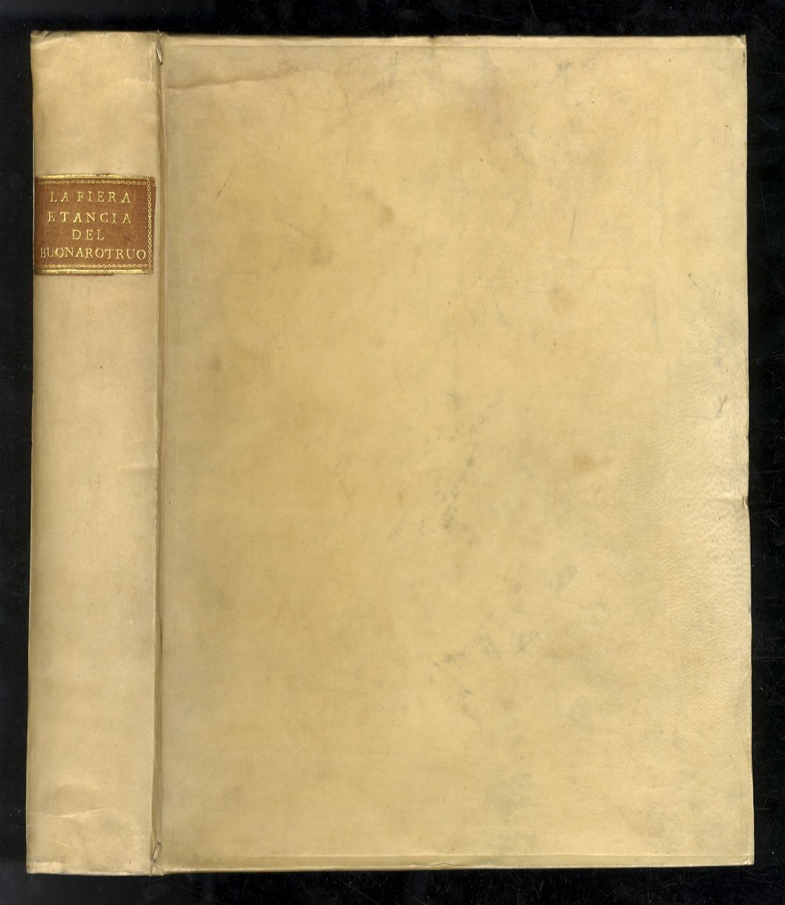 In Firenze, nella Stamperia di S.A.R. per li Tartini e Franchi, 1726, in-folio, legatura coeva in piena pergamena, titolo in oro su tassello di pelle al dorso, pp. XVI, 603, [1]. Con Ritratto di Michelangelo Buonarroti di Cristofano Allori inciso da Vincenzo Franceschini in antiporta, frontespizio in rosso e nero con vignetta calcografica raffigurante l'allegoria di Firenze, iniziali, frontalini e finalini xilografici. Gamba, 253: "Pregevolissima edizione. Credesi autore della prefazione Antonmaria Biscioni". Choix, 21334: "La Fiera qui occupe 319 pag. est en première édition". Bell'esemplare.