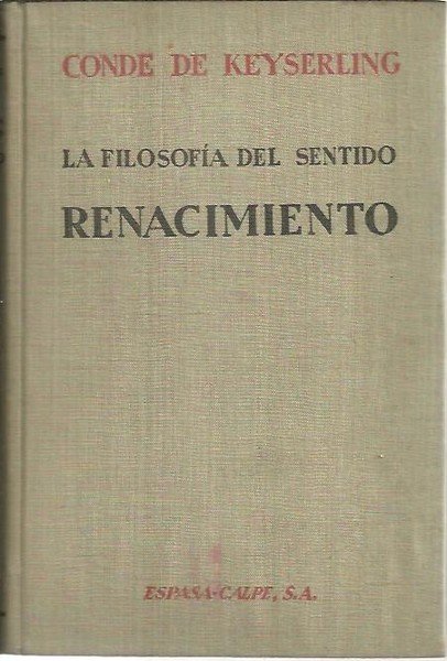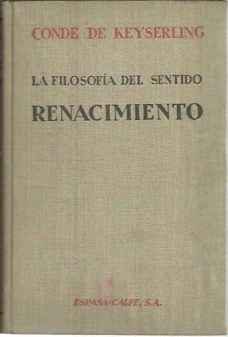 LA FILOSOFIA DEL SENTIDO. RENACIMIENTO. | Libri antichi e moderni | Keyserling, Conde Hermann.