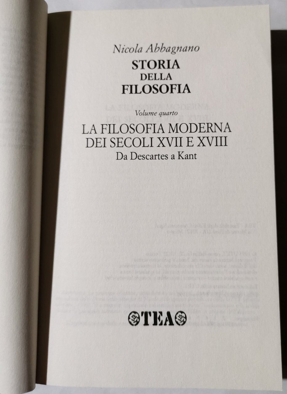 La filosofia moderna dei secoli XVII e XVIII. Da Cartesio a Kant | Libri antichi e moderni | Abbagnano, Nicola