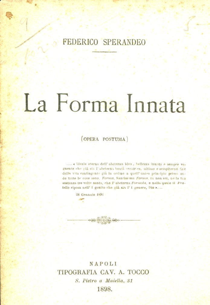 La Forma Innata (opera postuma) | Libri antichi e moderni | Sperandeo Federico