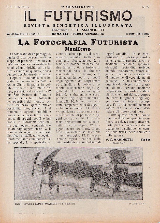 La Fotografia Futurista. Manifesto. Il Futurismo. Rivista Sintetica Futurista. N. 22 | Libri antichi e moderni | Marinetti Filippo Tommaso - Tato (Guglielmo Sansoni)
