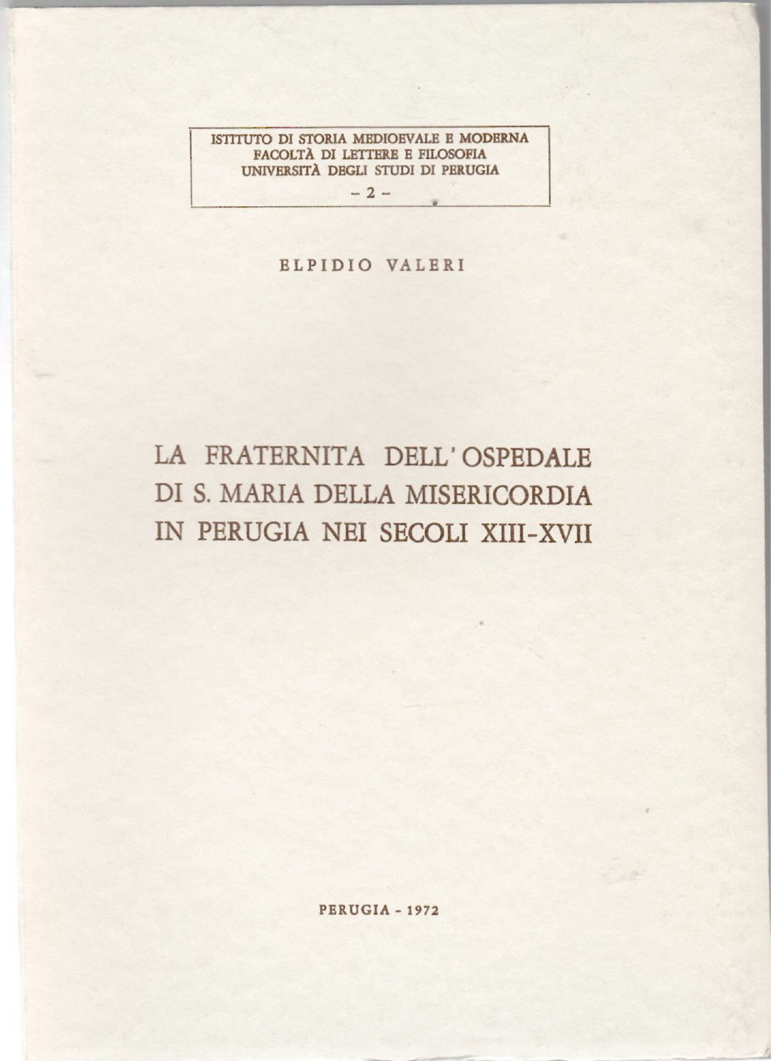 La Fraternita Dell'ospedale Di S. Maria Della Misericordia in Perugia Nei Secoli XIII-XVII | Libri antichi e moderni | Valeri Elpidio
