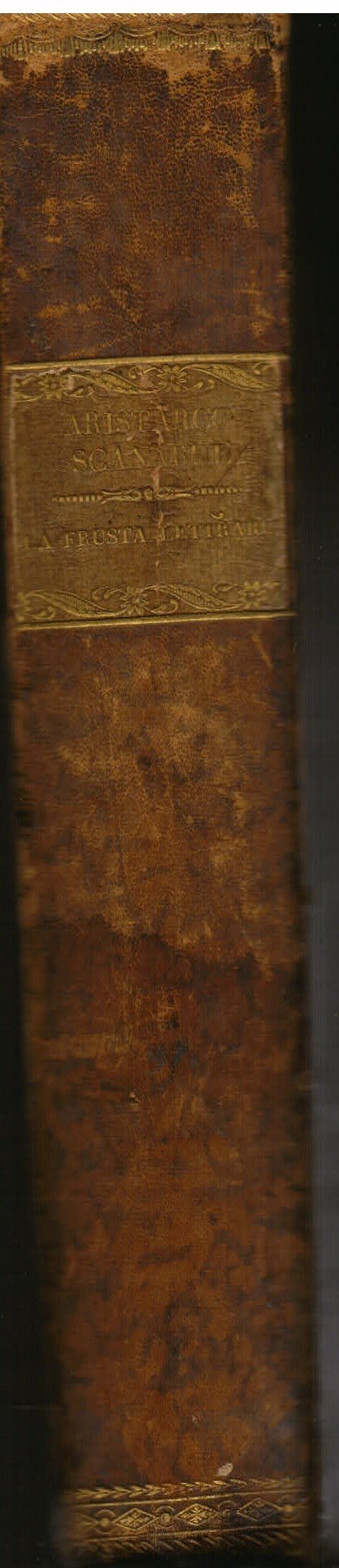 3 voll. in un tomo in-4° (245x178mm), pp. 240; 285; 124; legatura coeva m. pelle con titolo in oro su tassello al dorso. Piatti marmorizzati. Vignette xilografiche ai frontespizi. Testo bicolonne. Ottimo esemplare. Terza edizione in volume della raccolta di questo celebre periodico illuminista barettiano, pubblicato a Venezia fra il 1763 e il 1765, fra i più vivaci esempi della critica e delle polemiche letterarie settecentesche. Il Baretti compose le sue acuminate recensioni sotto lo pseudonimo Aristarco Scannabue, fingendosi un soldato in pensione che, ritiratosi in campagna, trascorre il tempo stroncando i libri prestatigli dal parroco locale, don Pietro Zamberlucco. Piccioni, Bibliografia di Giuseppe Baretti, p. 18.