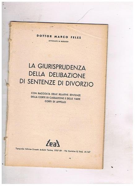 La giurisprudenza della deliberazione di sentenze sul divorzio. Con raccolta delle relative sentenze della corte di cassazione e delle varie corti d'appello. | Libri antichi e moderni | Feles Marco.
