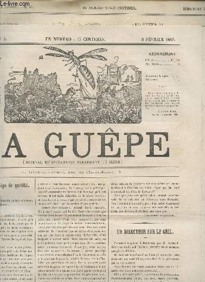 LA GUEPE - 1ere ANNEE - N�5 - 2 F�vrier 1865 / Lettre d'une g�pe de qualit� - Un directeur ssur le gril - Courrier des Th�atres - Histoire d'un coup� noir - Bourdonnements -. | Libri antichi e moderni | Collectif