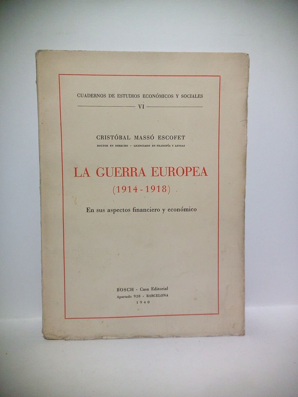 La Guerra Europea (1914-1918) en sus aspectos financiero y económico | Libri antichi e moderni | Massó Escofet, Cristobal