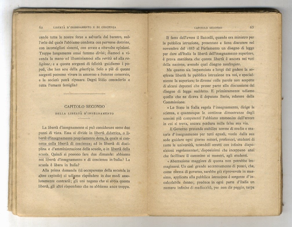 La libertà di insegnamento e di coscienza. Seconda edizione quasi interamente rifatta ed ampliata. | Libri antichi e moderni | Bocci Anastasio, P.(O.F.M.).