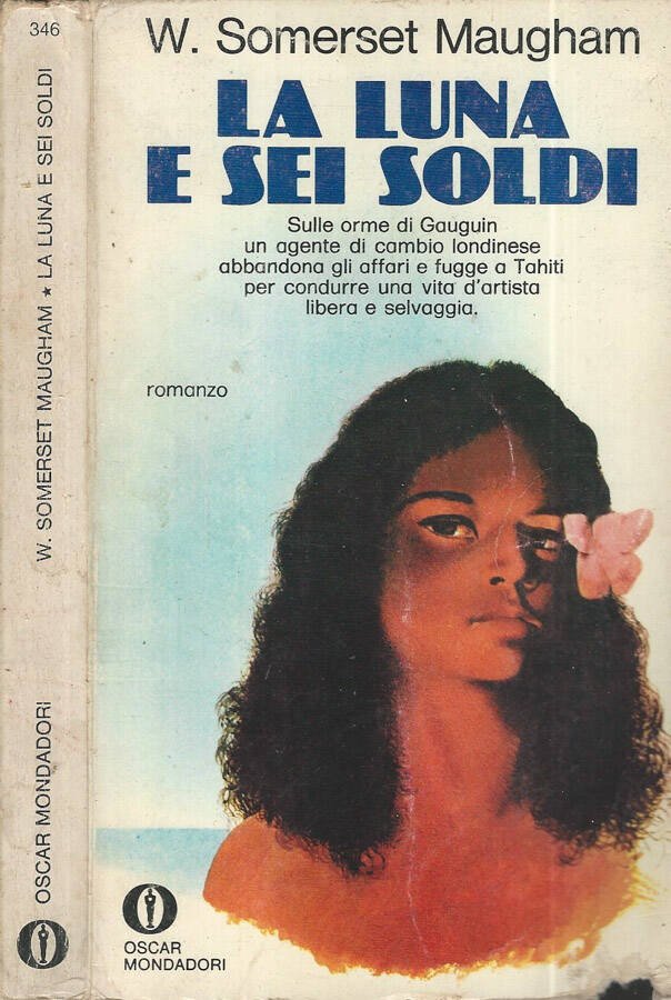Sulle orme di Gauguin un agente di cambio londinese abbandona affari e fugge a Tahiti per condurre una vita d'artista libera e selvaggia. Oscar Mondadori, volume 346, con la traduzione di Giorgio Monicelli. Brossura editoriale con copertina in cartoncino illustrato a colori in discreta conservazione, dorso appena piegato, legatura ferma. Pagine all'interno ambrate dal tempo. Numero pagine 246.