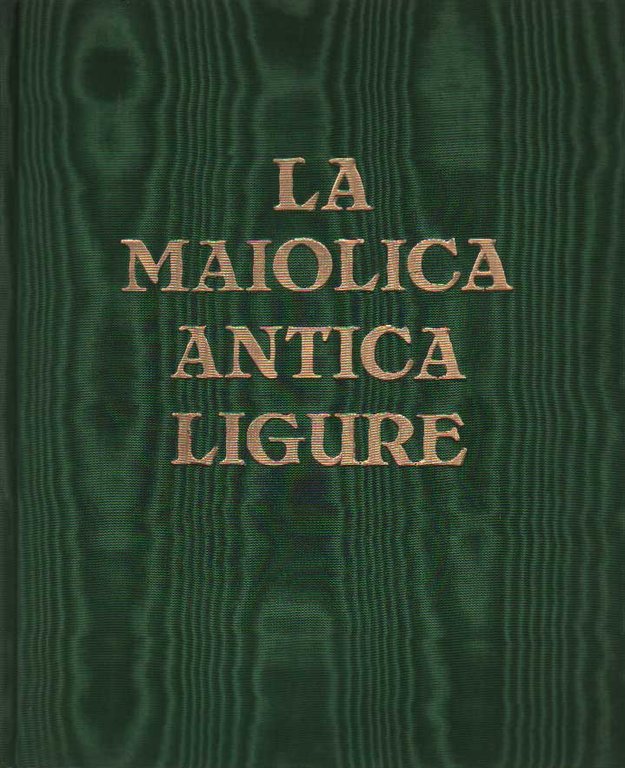 In-4 p., legatura editoriale damascata, pp. 58,(10), con 1 illustrazione in bianco e nero applicata alla pagina e 317 "marche" riprodotte, nel testo; oltre a 200 illustrazioni in bianco e nero fuori testo applicate su cartoncino e con descriz. a fronte, sui piu' importanti pezzi della produzione di Genova, Savona e Albisola. Ben conservato.