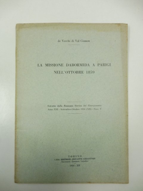 La missione Dabormida a Parigi nell'ottobre | Libri antichi e moderni | De Vecchi Di Val Cismon Cesare Maria