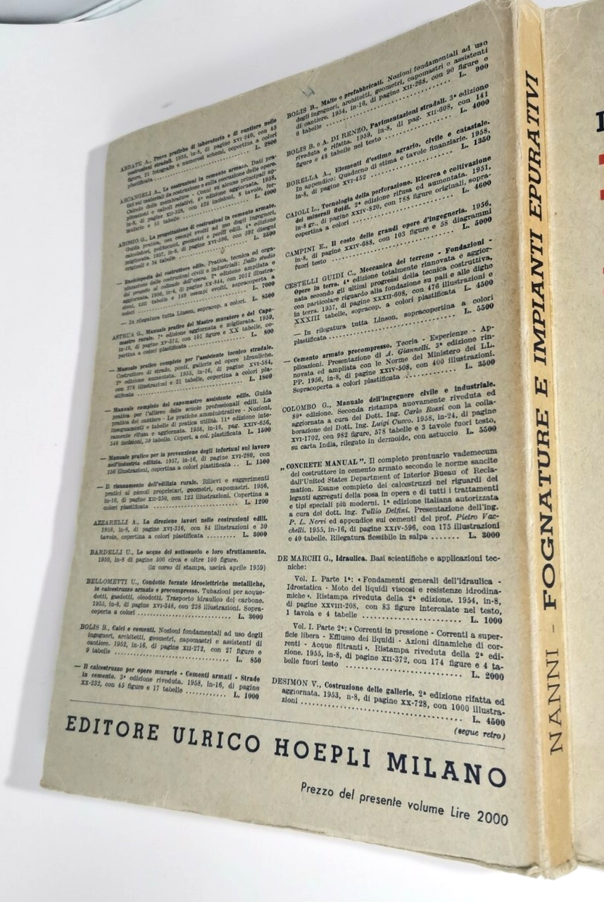 LA MODERNA TECNICA DELLE FOGNATURE E DEGLI IMPIANTI EPURATIVI di Vittorio Nanni | Libri antichi e moderni |
