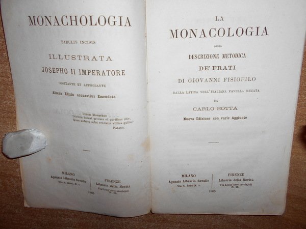 La Monacologia ossia descrizione metodica de' Frati di Giovanni Fisiofilo 800. Dalla latina nell' italiana favella recata da CARLO BOTTA | Libri antichi e moderni | Di Giovanni Fisiofilo
