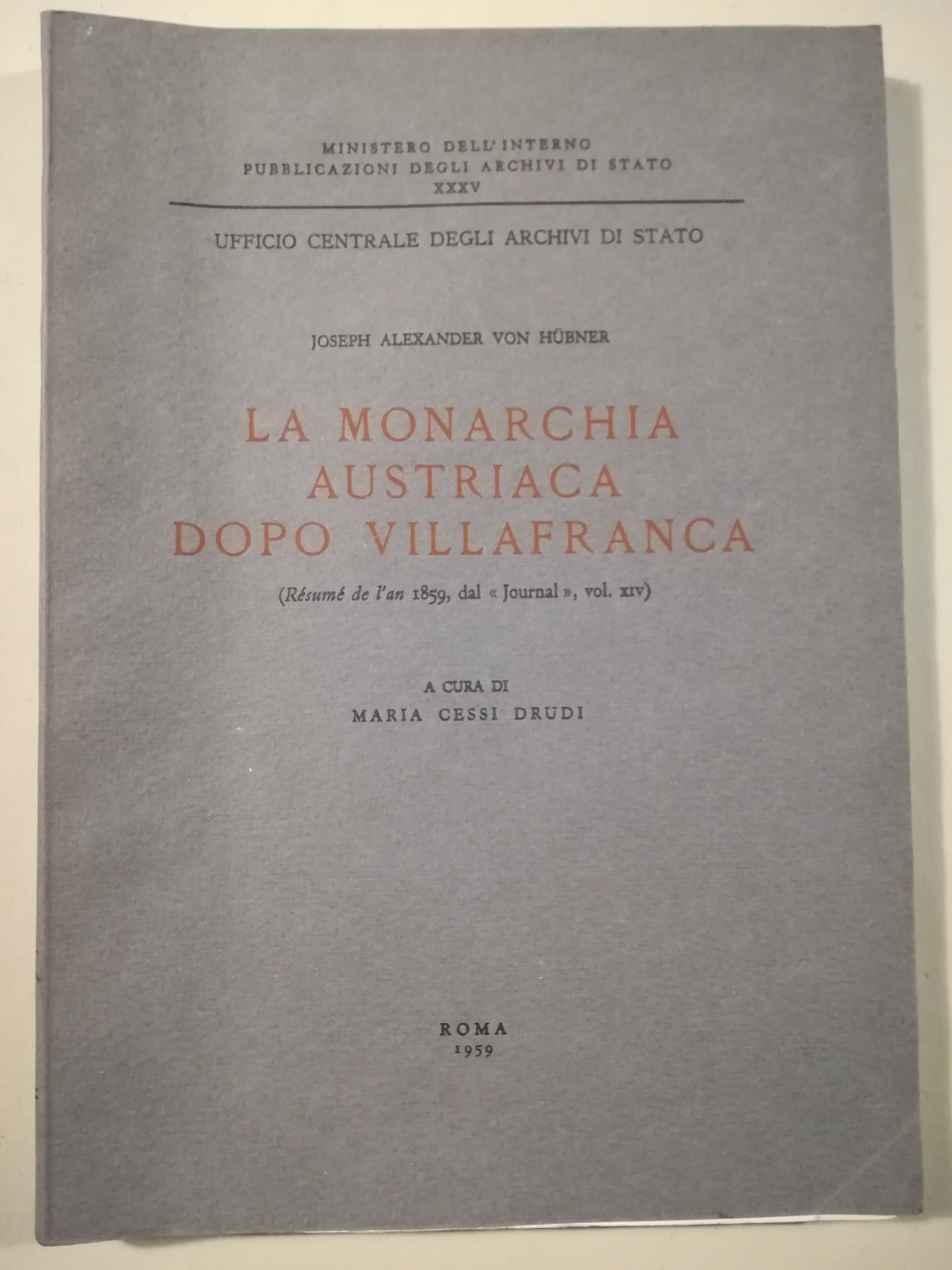 La monarchia austriaca dopo Villafranca (Résumé de l'an 1859, dal "Journal", vol. XIV). A cura di Maria Cessi Drudi | Libri antichi e moderni | HUBNER, Joseph Alexander von