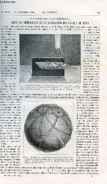 La nature n° 1019 - Un chapitre d'astronomie expérimentale : Imitation artificielle de la gémination des canaux de Mars avec gravures dans le texte. la restauration des terrains en montagne et l'extinction des torrents avec gravures dans le texte. Au fond | Libri antichi e moderni | Collectif