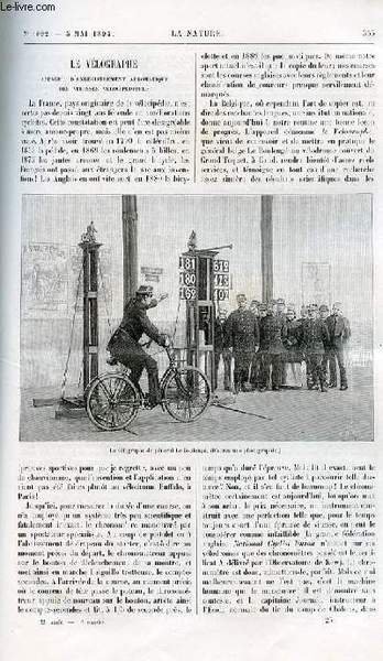 La nature n° 1092 - Le vélographe - appareil d'enregistrement automatique des vitesses vélocipédiques avec gravure dans le texte du vélocipède de Le Boulangé. Les nouveaux ponts du département de la Seine, suite - les ponts de Puteaux avec gravures | Libri antichi e moderni | Collectif