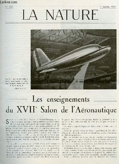 La nature n° 3127 - Les enseignements du 17è salon de l'aéronautique, Les cimetières de navires, Le microscope électronique, Les orgues de la cathédrale de Strasbourg, La pêche au thon du Pacifique, Le grand Carnot.