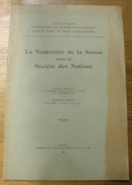 La Neutralité de la Suisse dans la Société des Nations. | Libri antichi e moderni | Borel, Eugène.