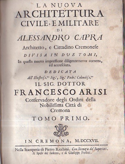 La nuova architettura civile, e militare divisa in due tomi, in questa nuova impressione diligentemente corretta, ed accresciuta | Libri antichi e moderni | Capra Alessandro